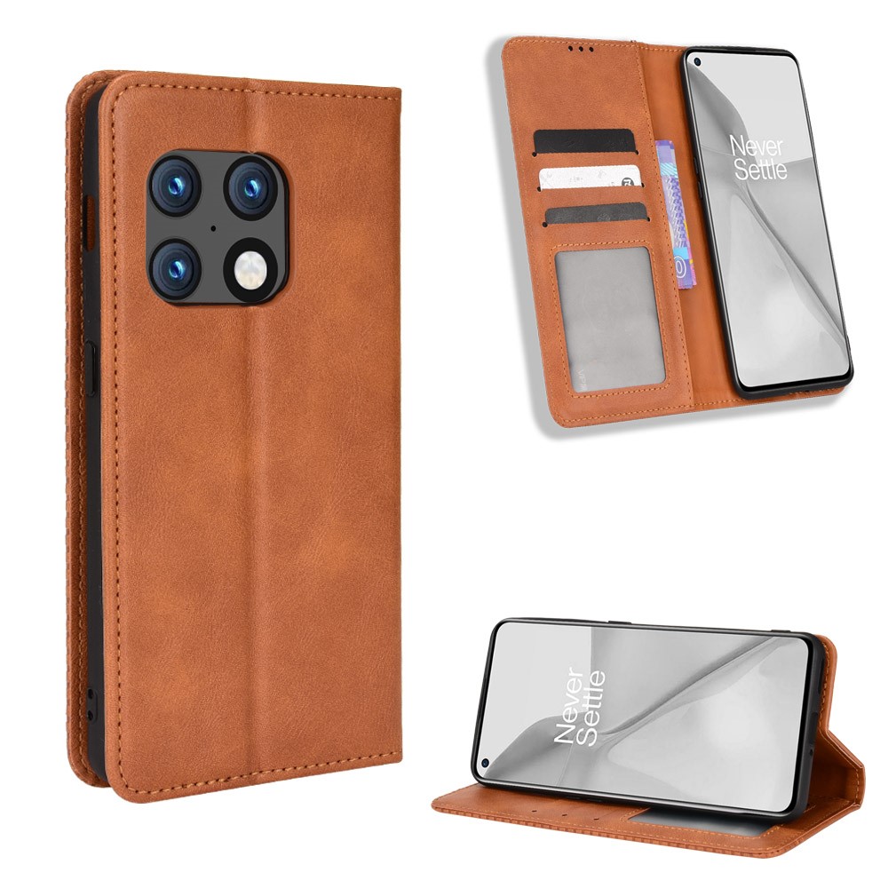 OnePlus 10 Pro Vintage Style Magnetic Leather Wallet Case Cover, Brown | Telefona Vāciņš Maciņš Apvalks Grāmatiņa