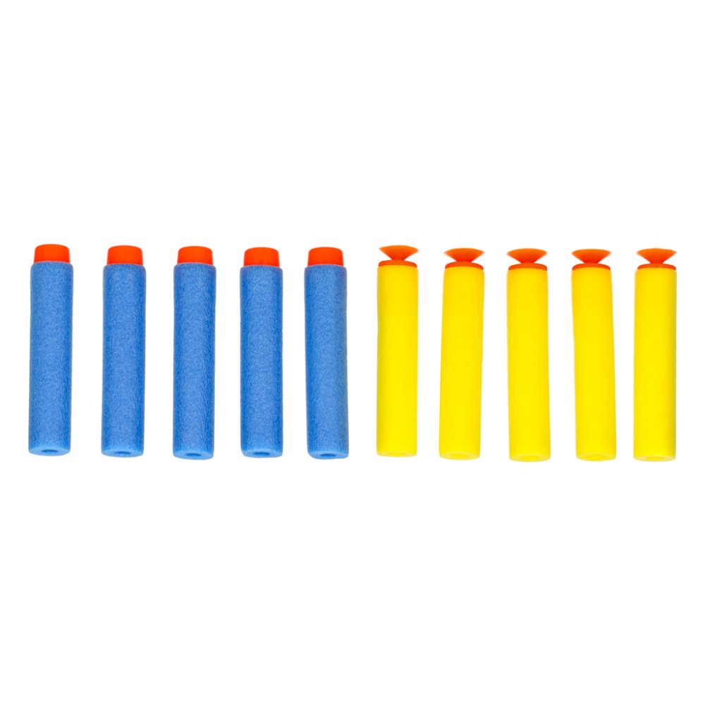 Komplektā ir iekļautas 6 putu bumbiņas un 10 putu patronas, kas nodrošina daudzveidību rotaļu laikā. Uz iepakojuma ir īpašs mērķis izgriešanai, ko var izmantot treniņiem. Tas ļauj bērnam trenēt precizitāti un organizēt šaušanas turnīrus, attīstot savas prasmes un mācoties veselīgu sacensību garu.