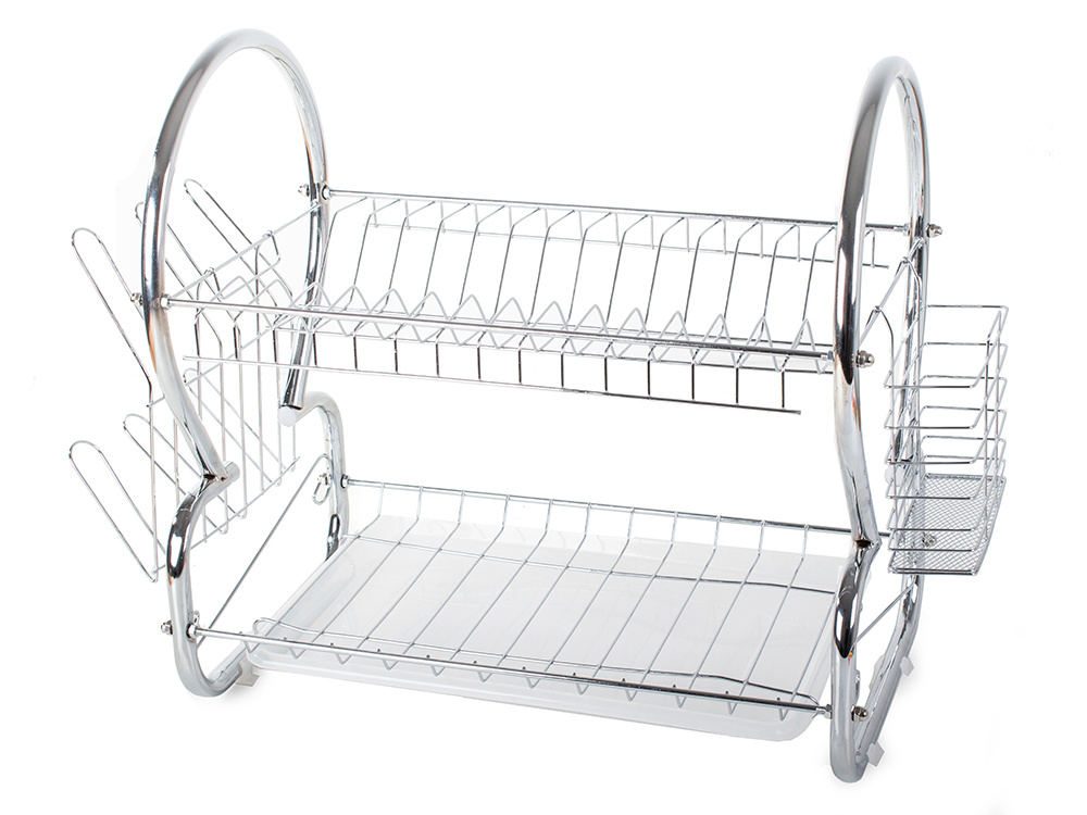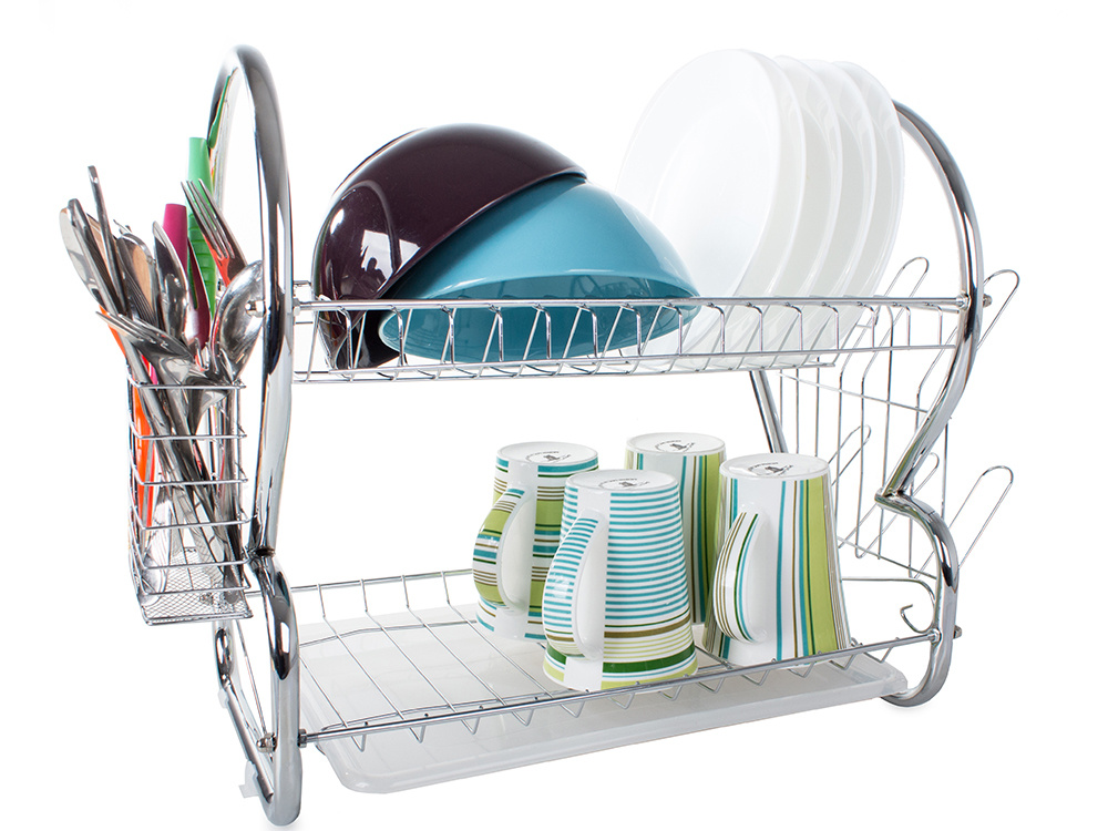 Divu līmeņu trauks žāvētājs ir neaizstājams aksesuārs katrā virtuvē. Tas ir ļoti praktisks, ar diviem līmeņiem, kas spēj uzņemt lielu daudzumu šķīvju, bļodu un glāžu. Turklāt tas ir aprīkots ar diviem piekārtiem turētājiem: viens galda piederumiem un otrs glāzēm.