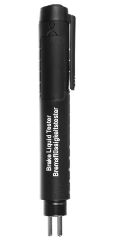 - Viss, kas jums jādara, ir jānospiež poga un jāiegremdē testera elektrodi bremžu šķidruma tvertnē, un pēc tam jālasa gaismas diodes. Rezultāts parādās pēc dažām sekundēm pēc testera iegremdēšanas šķidrumā .