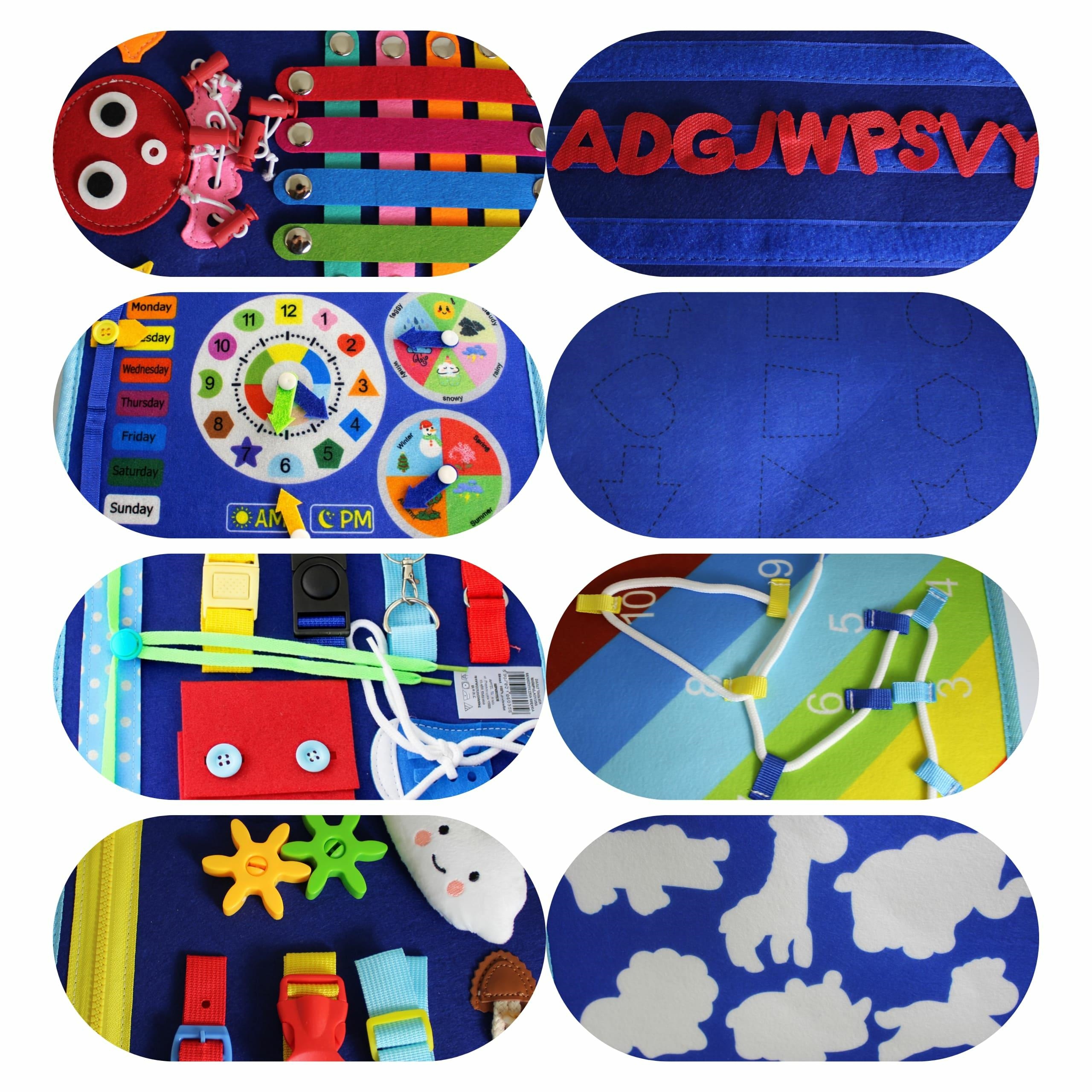 Šī manipulāciju grāmata ir droša un izglītojoša rotaļlieta, kas radīta pašiem mazākajiem. Tā ir lieliski piemērota arī bērniem ar autisma spektra traucējumiem. Izgatavota no mīksta, taustei patīkama filca, kas ir pilnīgi drošs bērna maigajai ādai. Visi elementi ir stingri piestiprināti, garantējot drošību un komfortu rotaļu laikā.