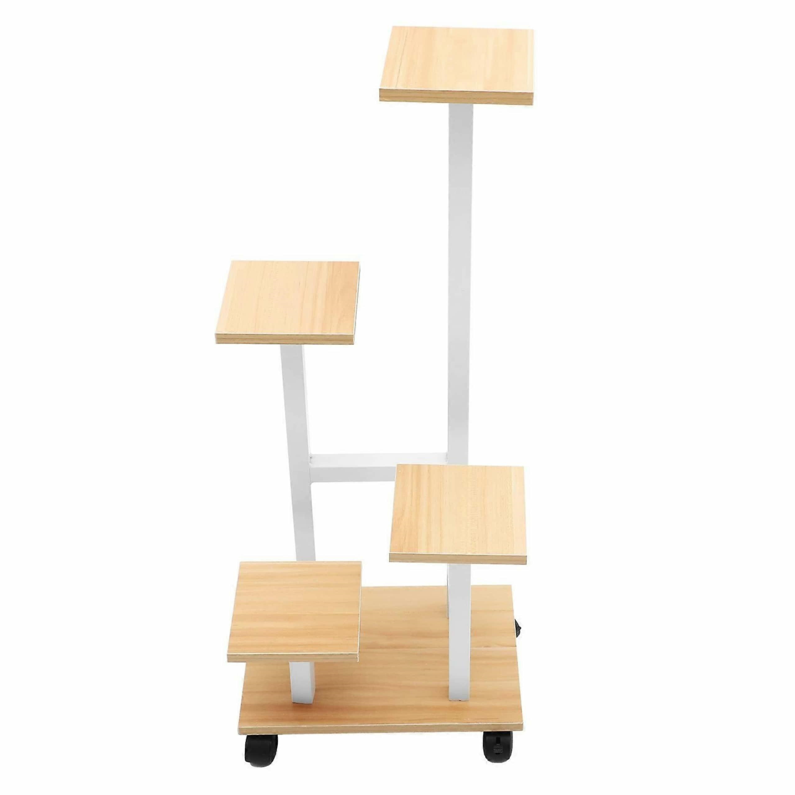 Šis piecu līmeņu puķu statīvs ir lieliski piemērots jūsu iecienītāko istabas augu izvietošanai, ienesot dabas skaistumu un kārtību jūsu mājās. Tā pārdomātais dizains ļauj maksimāli izmantot vietu, pat nelielās telpās, un stabili noturēt līdz četriem puķu podiem.