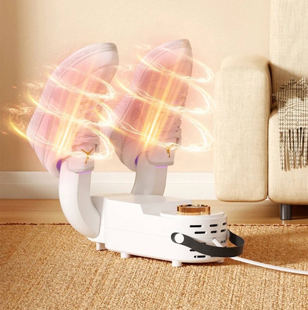 • Drošs materiāliem: Ierīce uzsilst līdz aptuveni 48°C, nodrošinot saudzīgu žāvēšanu, kas nebojā apavus un audumus.