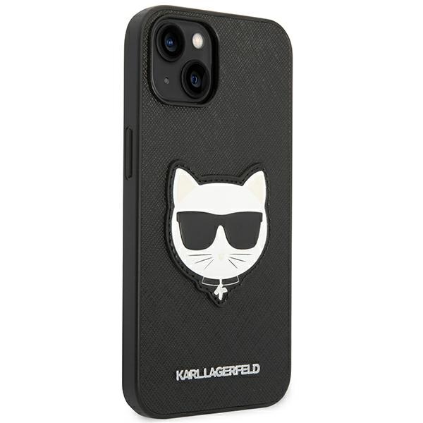 Karl Lagerfeld iPhone 14 Plus vāciņš Saffiano Choupette Head Patch Melns