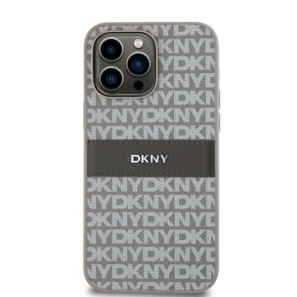 DKNY iPhone 14 Pro Max vāciņš Leather Mono Stripe & Metal Logo, bēšs