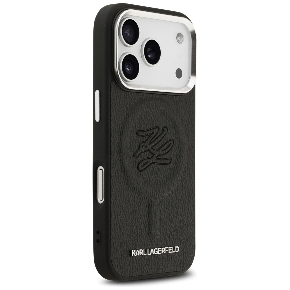 Piešķir savam iPhone 17 Pro Max ikonisku stilu ar melno Karl Lagerfeld Initial & Metal Logo MagSafe vāciņu.