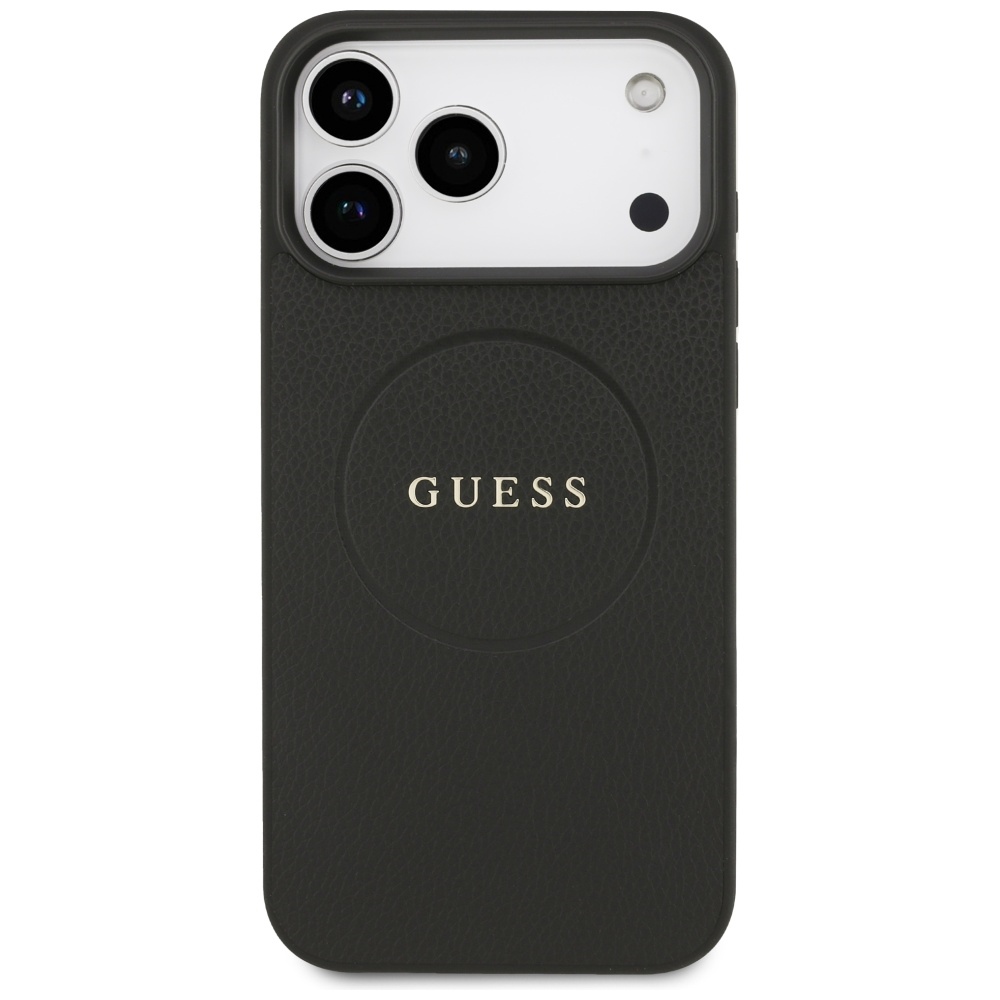 Guess Grained Ring MagSafe vāciņš iPhone 17 Pro Max apvieno augstākās klases aizsardzību ar izsmalcinātu stilu. Izgatavots no izturīga TPU un ekoloģiskās ādas, šis cietais vāciņš ir aprīkots ar magnētisko gredzenu, kas ir saderīgs ar MagSafe aksesuāriem, nodrošinot drošu un ērtu savienojumu. Eleganto melno dizainu papildina ikoniskais zelta Guess logotips, bet paceltās malas un elastīgās sānu malas sniedz papildu triecienu absorbciju un vieglu uzstādīšanu. Baudiet pilnu piekļuvi visām pieslēgvietām un pogām, un pasargājiet savu ierīci ar vāciņu, kas izceļas ar luksusa pieskārienu un rūpīgu detaļu izstrādi. Oficiāli licencēts Guess produkts – ideāla izvēle tiem, kas novērtē drošību un eleganci. | Phone case, MagSafe, Eco-leather