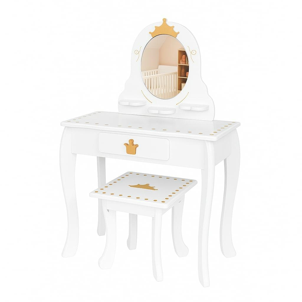 Katrs bērns sapņo par savu īpašo stūrīti, kur līdzināties mammai vai iemīļotajiem pasaku varoņiem. Šis elegantais kosmētikas galdiņš ir radīts, lai piepildītu šos sapņus, nodrošinot drošu un aizraujošu vidi iztēles lidojumam. Tā klasiskais dizains un neitrālā krāsa lieliski iederēsies jebkurā bērnistabas interjerā.