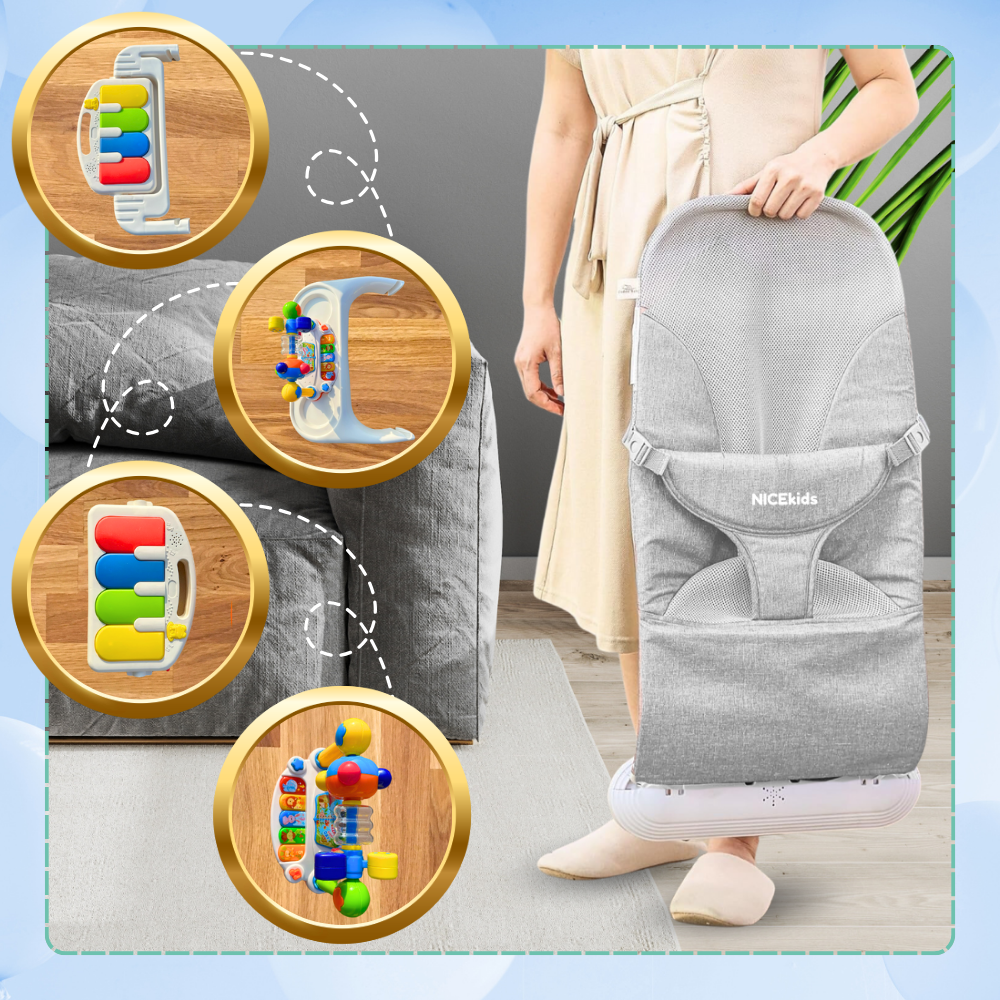 Bakalu NICEkids ir mūsdienīgs un funkcionāls saliekams šūpuļkrēsliņš, kas radīts, lai nodrošinātu mazulim komfortablu atpūtu un attīstošu izklaidi gan mājās, gan ceļojumos.