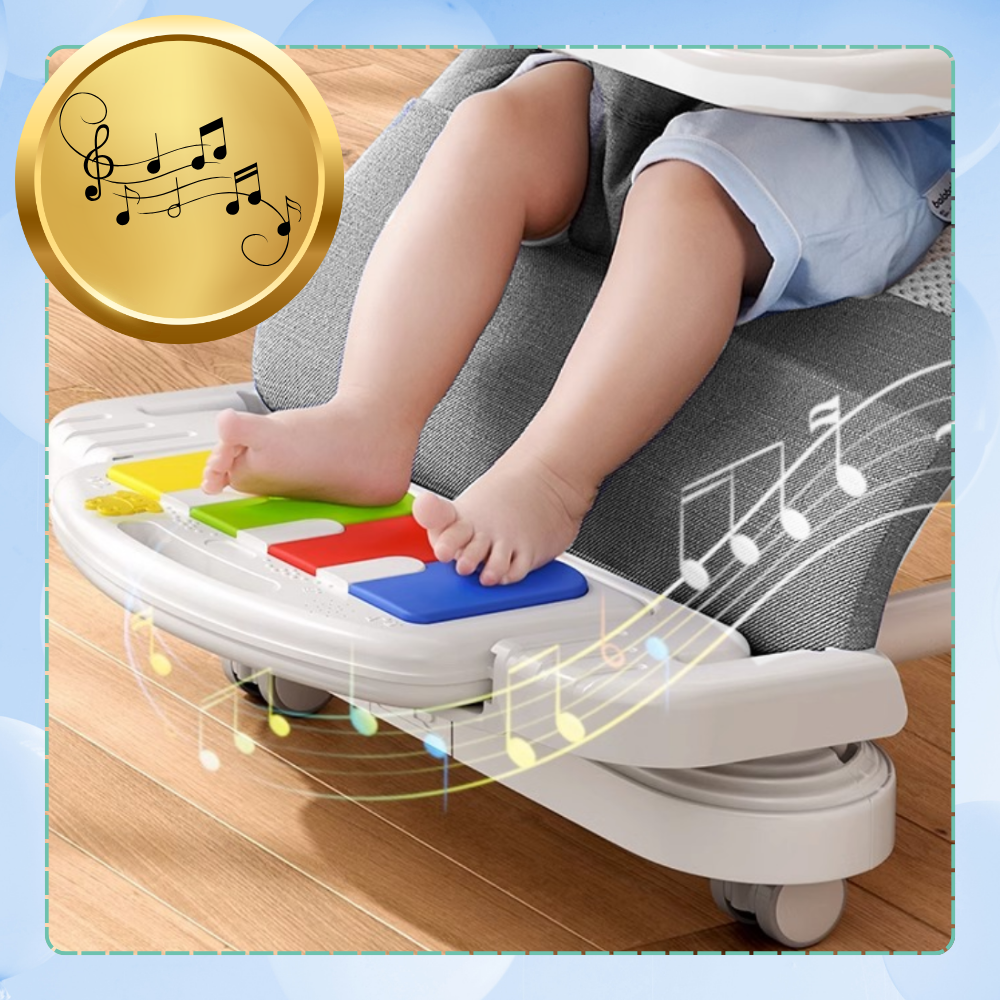 Bakalu NICEkids saliekams zīdaiņu šūpuļkrēsliņš ar klavierēm, pelēks