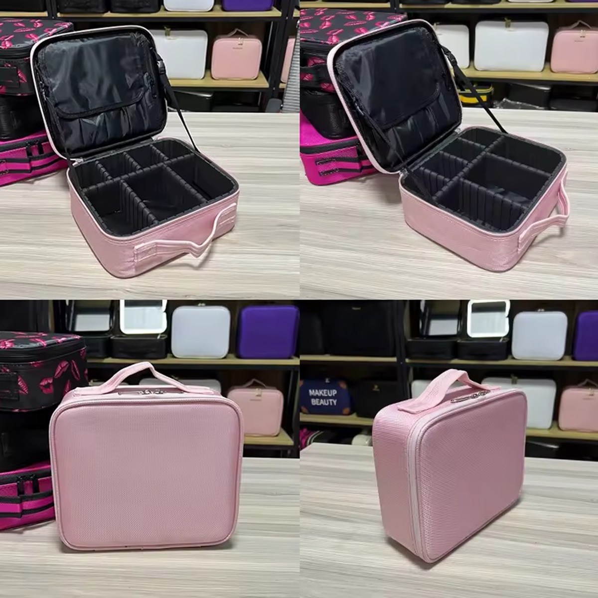 Ceļojumu kosmētikas kaste ar regulējamām nodalījumiem, rozā