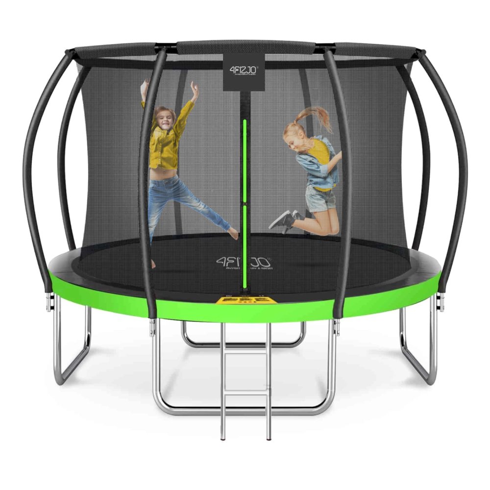 4Fizjo 1219 PRO bērnu dārza batuts ar aizsargtīklu, 374 cm (12FT), zaļš/melns