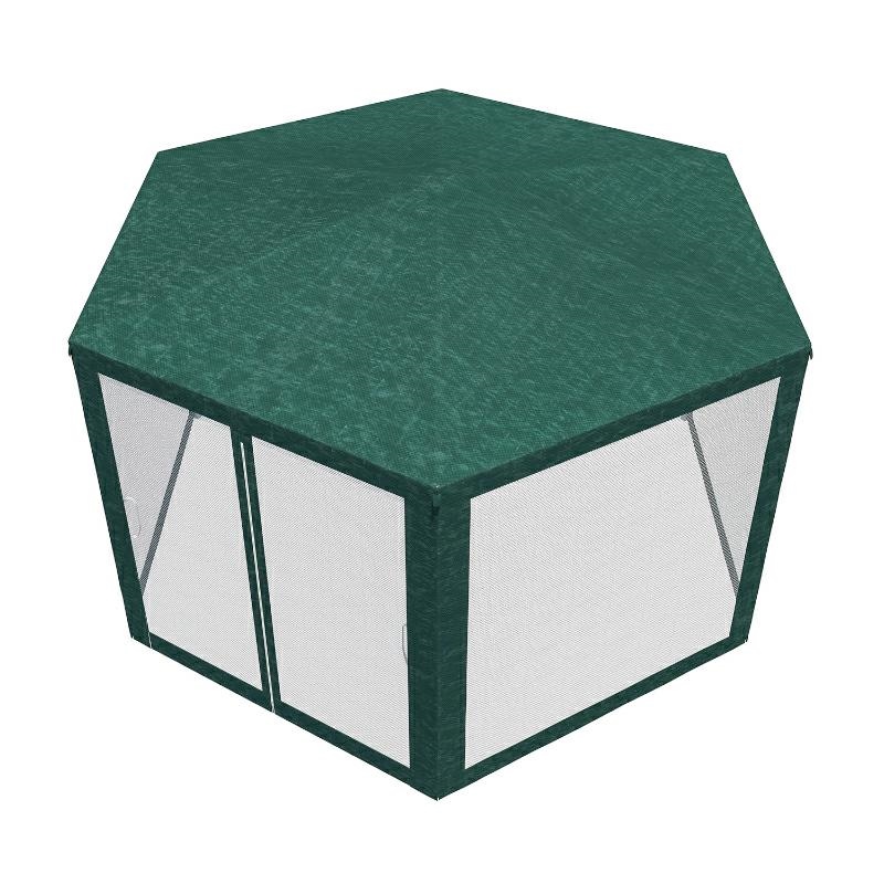 Šis paviljons ir lieliska izvēle dārza ballītēm, piknikiem vai vienkārši atpūtai pagalmā. Tā plašā sešstūra forma piedāvā vairāk izmantojamās platības nekā standarta 3x3 m teltis, un moskītu tīkli ļauj baudīt svaigu gaisu bez traucējošiem kukaiņiem.