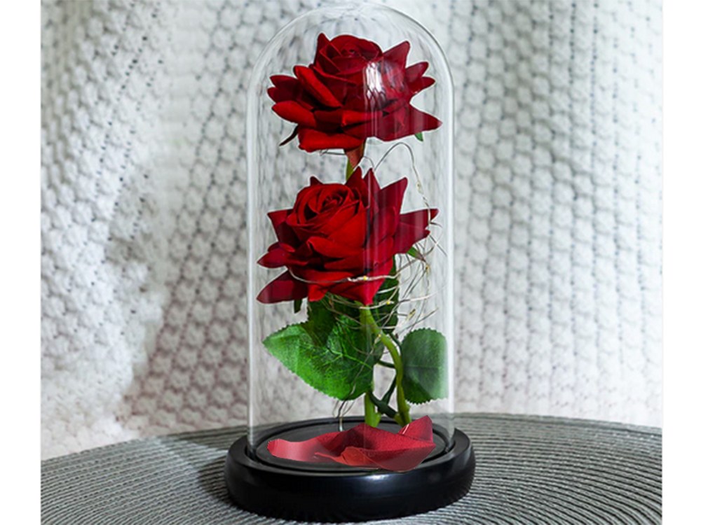 Mūžīgā roze stikla kupolā ar LED RGB apgaismojumu