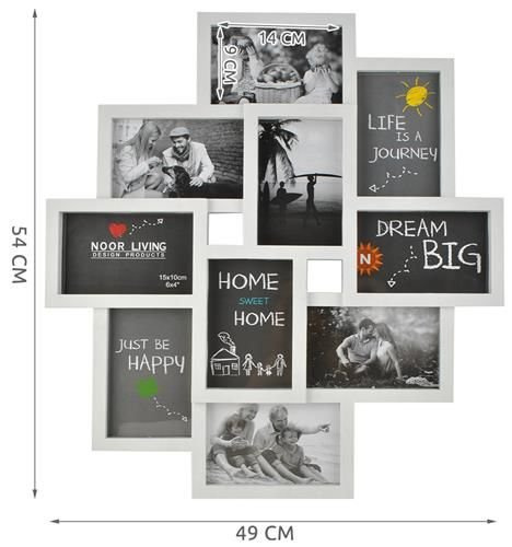 Izstādiet savas dārgākās atmiņas ar šo stilīgo fotorāmi-kolāžu. Tas ir ideāls veids, kā vienuviet apkopot līdz pat 10 iemīļotākās 10x15 cm fotogrāfijas, radot skaistu un personisku sienas dekoru.