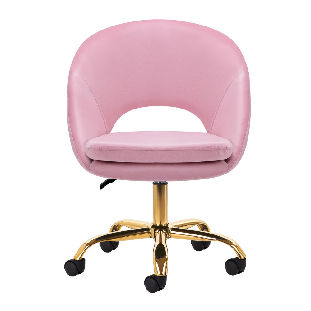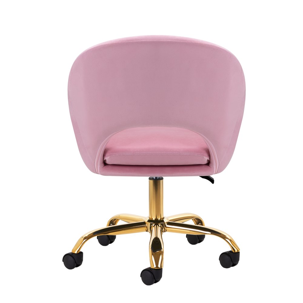 4Rico QS-MF18G minimālistiskais dizains piesaista uzmanību. Tā skaistais rozā samta apšuvums piešķir tam unikālu raksturu, ko lieliski papildina elegantā zelta pamatne. Aprīkots ar funkcionāliem ritentiņiem, šis krēsls garantē bezpūļu mobilitāti jūsu darba telpā.