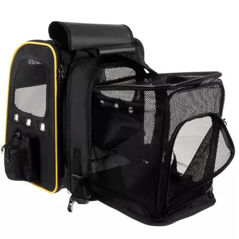 - Mugursoma nodrošina ērtu atpūtas vietu Jūsu mīlulim transportēšanas un ceļojumu piedzīvojumu laikā. Elpojošie sieta logi nodrošina lielisku ventilāciju , un iekšējā iebūvētā pavada papildus aizsargā jūsu mājdzīvnieku no nevēlamām izejām.