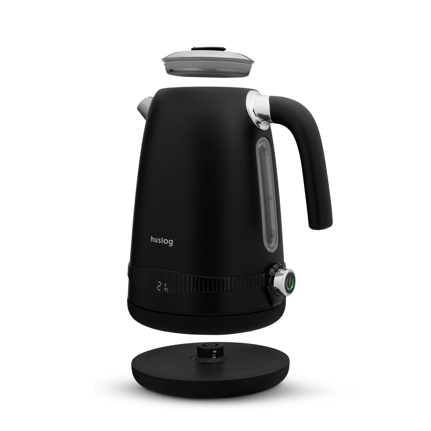 Elektriskā tējkanna Huslog Retro ar temperatūras kontroli 1.7L 2200W, melna
