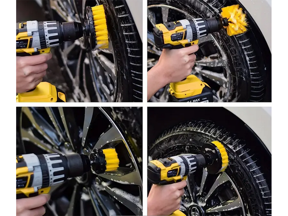 A versatile 23-piece polishing and cleaning set designed for use with drills and screwdrivers. The set includes sponges of various hardness levels and nylon brushes, suitable for car care as well as household and garden cleaning tasks.