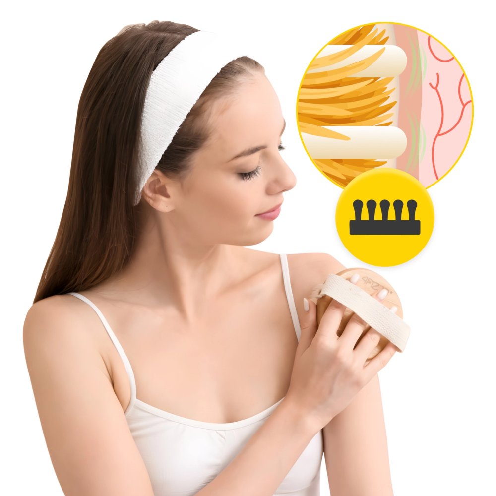 Regular dry brushing stimulates blood and lymphatic circulation, which is crucial for firming the skin and reducing the "orange peel" effect. The round shape and combination of short, hard bristles with 19 silicone nodules make it perfect for massaging larger body areas like thighs and buttocks.