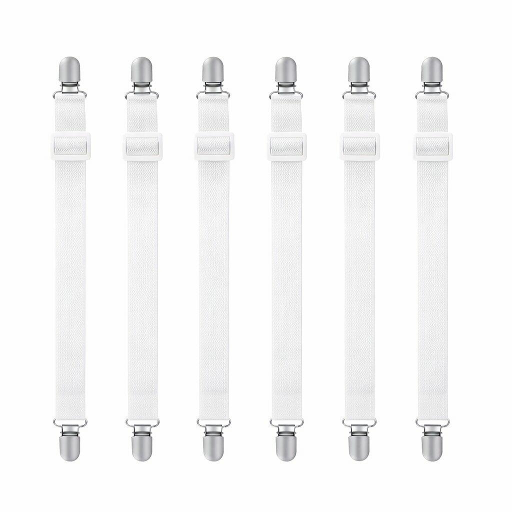 Adjustable Bed Sheet Fasteners 6 Pieces, White