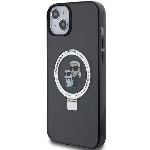 Karl Lagerfeld iPhone 15 Plus Case Ring Stand Karl & Choupette MagSafe, Black