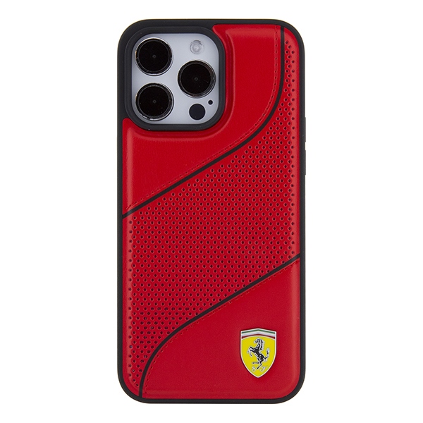 Ferrari iPhone 15 Pro Case Perforated Waves Metal Logo, Red