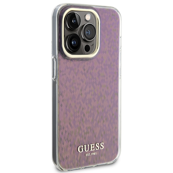 Guess iPhone 15 Pro Case IML Faceted Mirror Disco Iridescent, Pink
