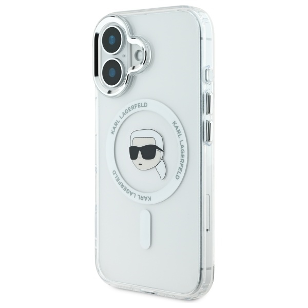 Karl Lagerfeld iPhone 16 Case IML Metal Karl Head MagSafe, White