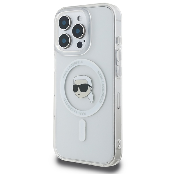 Karl Lagerfeld iPhone 16 Pro Case IML Metal Karl Head MagSafe, White