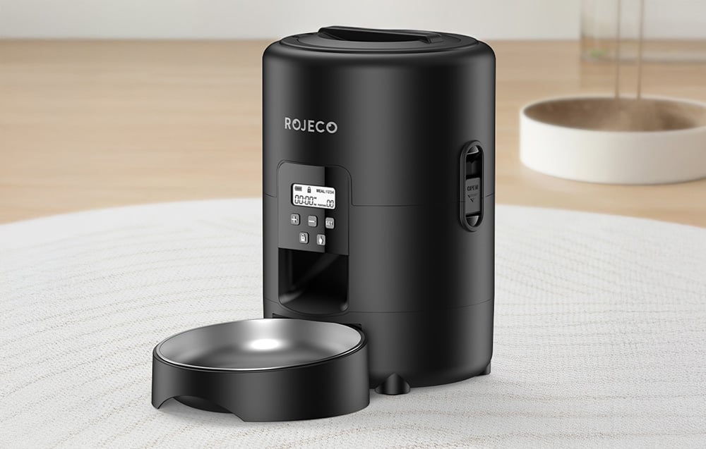 Whether you are at work, at a party, or on a short trip, the Rojeco feeder provides peace of mind. Compatible with dry, mixed, and freeze-dried food (2-15mm), it is the perfect dietary companion for your cat or small dog.