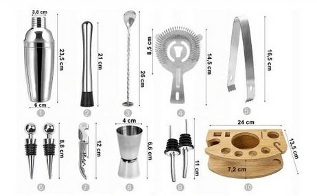 The bartender set includes 12 elements: