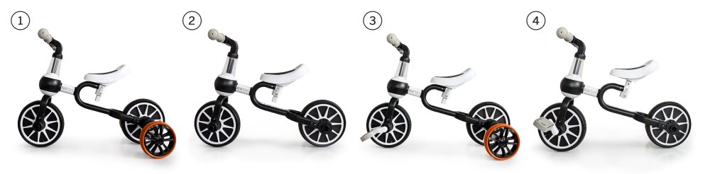 The specially designed structure of the bike and its adjustable seat height allow you to adapt its functionality to your child's current abilities. The bike can be used in 4 configurations: