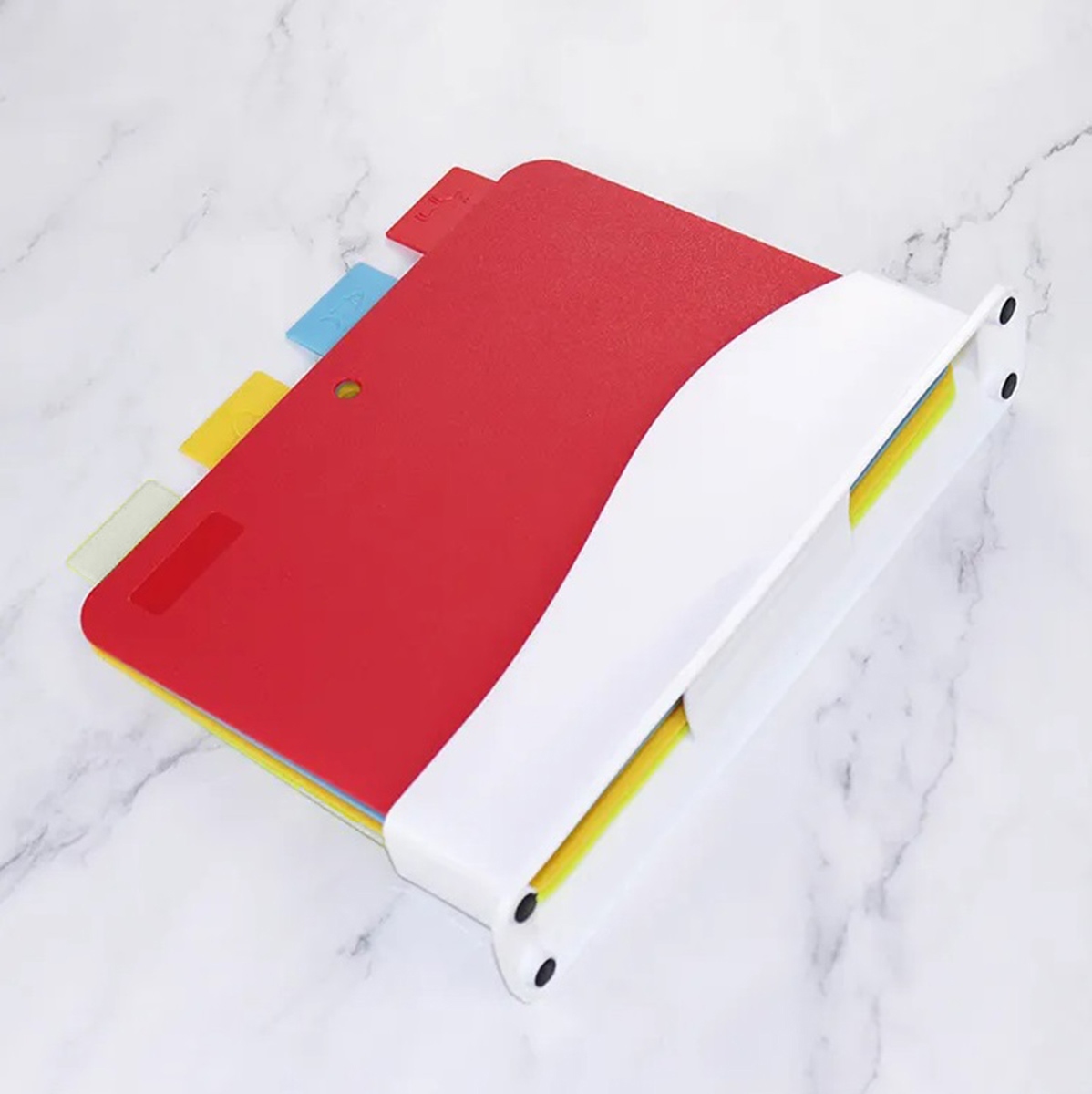 Cutting Board Set with Stand (4 pcs) — a convenient and hygienic solution for your kitchen. Each board has its own color and pictogram, helping you assign it to a specific type of food and preventing cross-contamination between products.