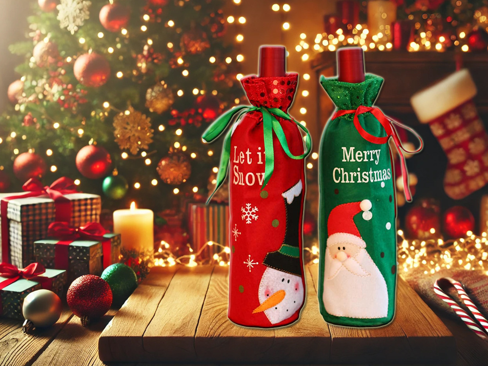 This cover is not only a beautiful table decoration but also a great way to originally wrap a beverage as a gift. The soft material and festive design will delight both household members and guests.