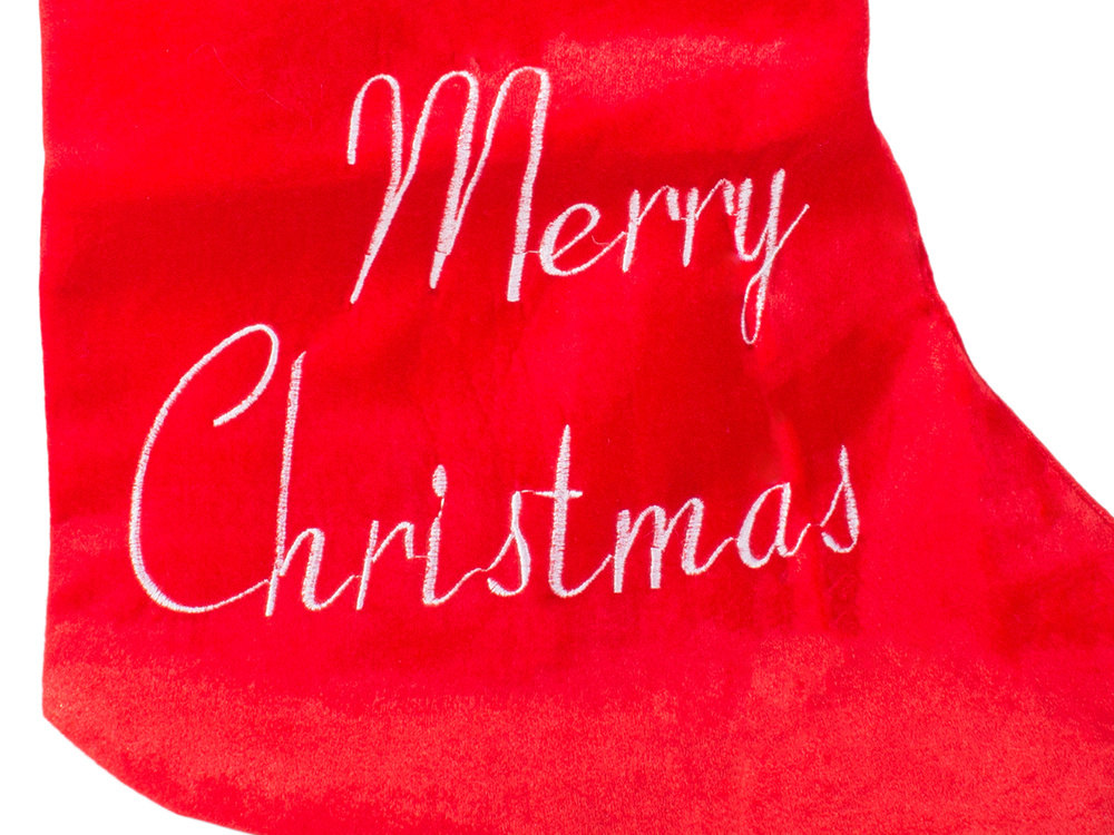A large and spacious Christmas stocking designed for packing holiday gifts, sweets, and decorating the home.