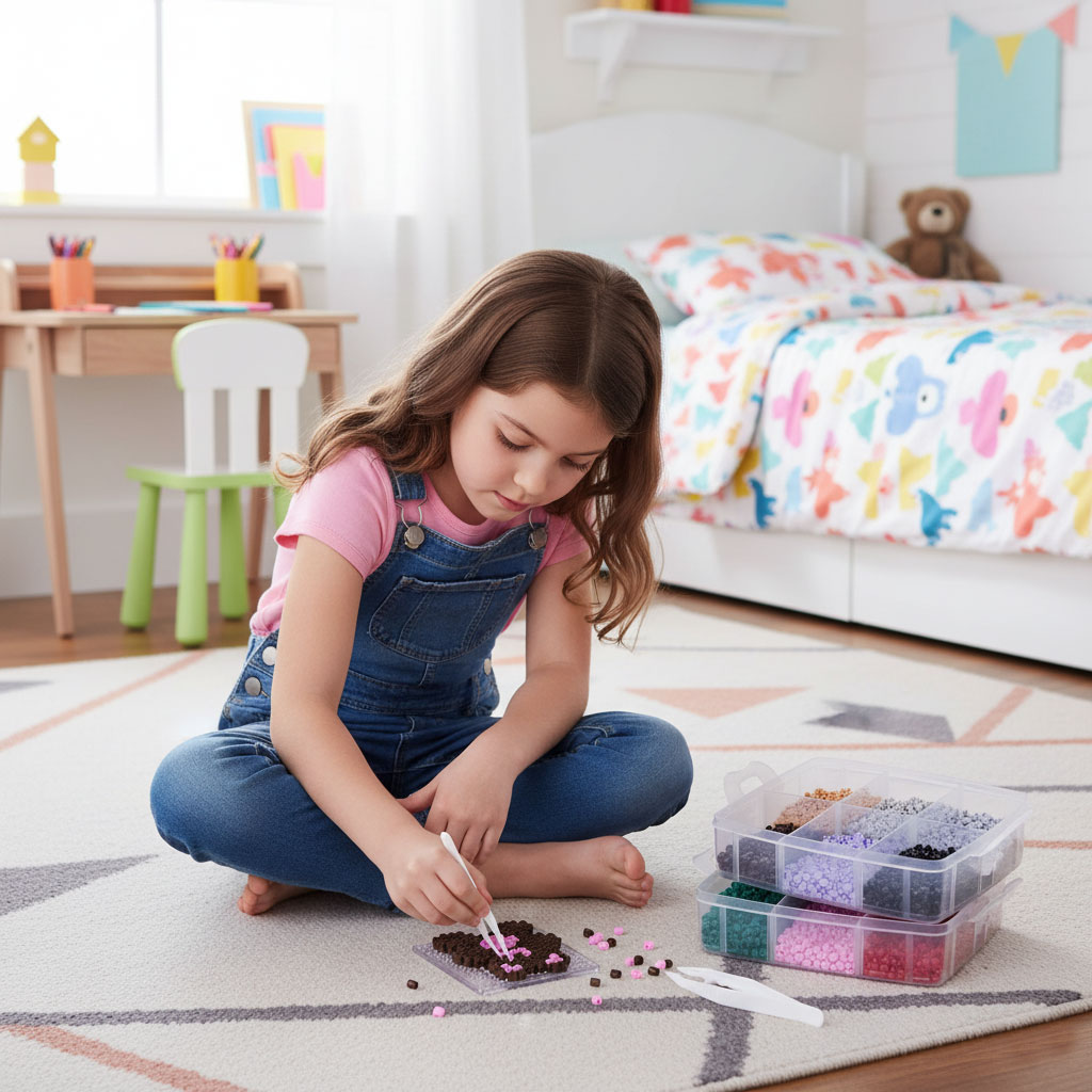 The set includes colourful templates with ready-made patterns to help your child start their creative adventure. Cute bears, flowers, hearts, and animals are just some of the designs that can be easily recreated by placing the beads step-by-step. This is a great tool for beginners that makes learning easier and inspires them to create their own projects!