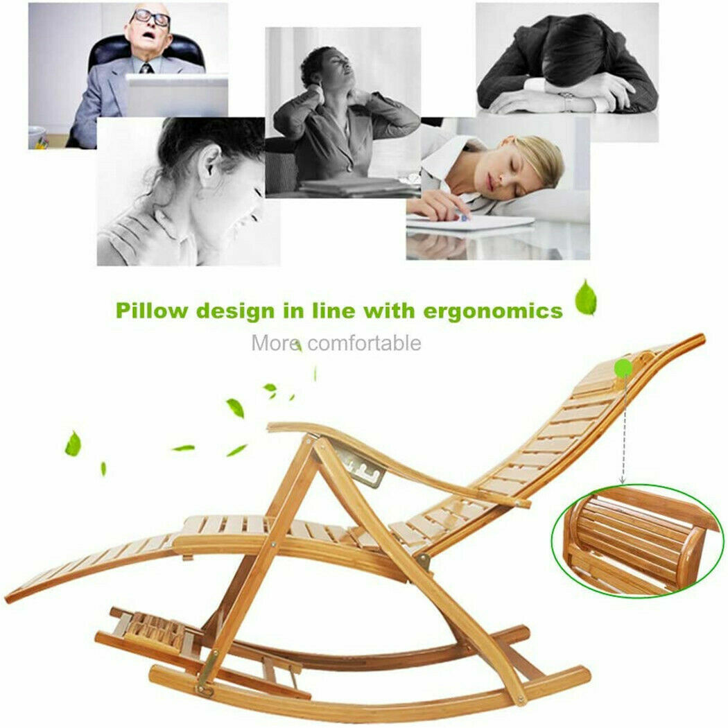 Bamboo Sun Lounge Patio Pool Lounger Rocking Swing Chair Sunbed Recliner