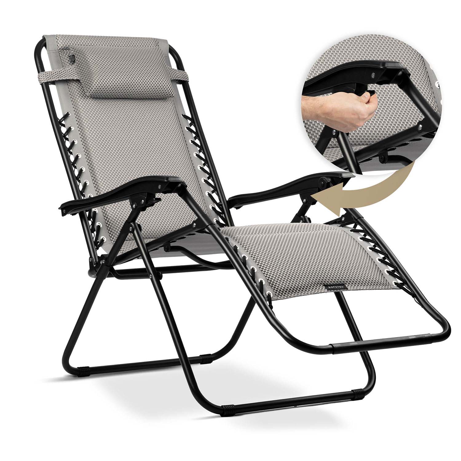 This folding gravity lounger is designed to give you a feeling of weightlessness and ultimate relaxation. Perfect for the garden, terrace, balcony, or travel.