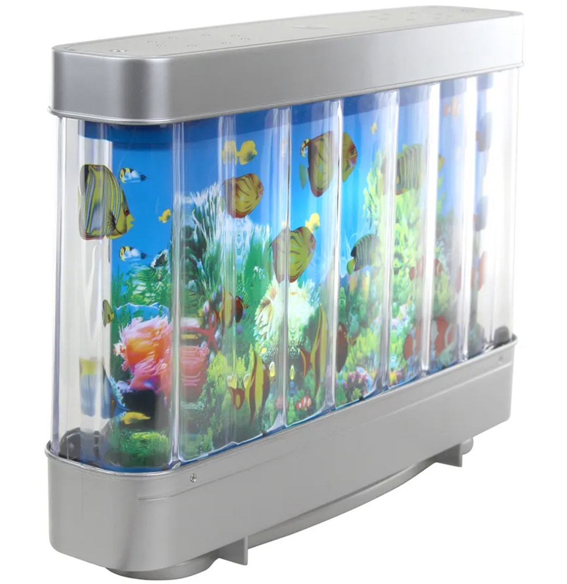 A decorative LED night light in the shape of an artificial aquarium that creates a soothing atmosphere in any room. The device perfectly imitates the look of a classic aquarium using a moving printed background, bringing a touch of nature to your interior.