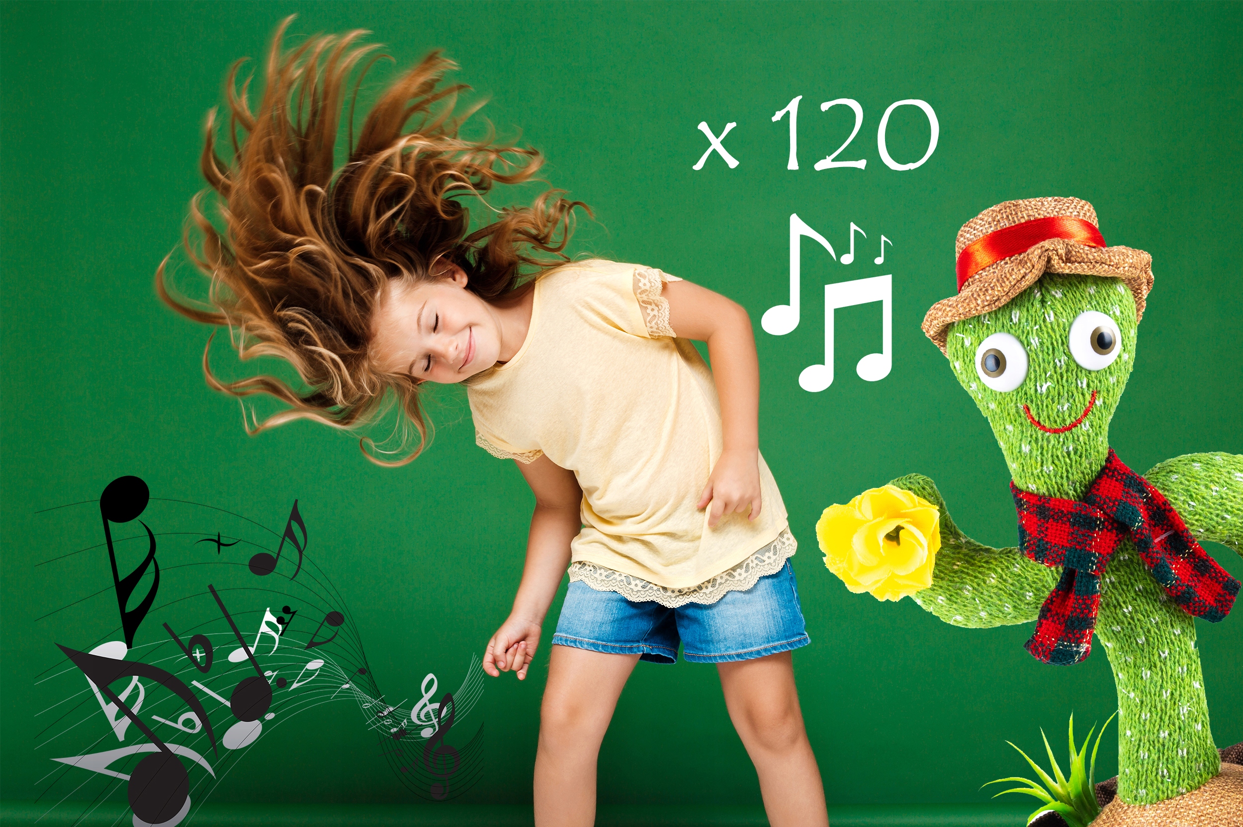 The singing cactus has a large number of songs in its database - 120 built-in song fragments, thanks to which it does not get bored quickly. Switch tracks at any time with just one button!