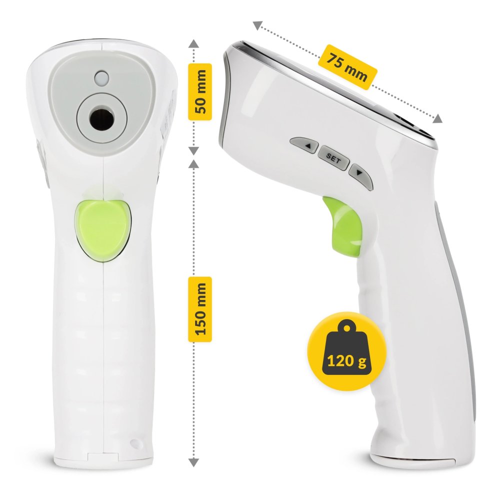 This thermometer is ideal for home use by both adults and children. The non-contact measurement technology ensures a high level of hygiene and allows measurements to be taken without disturbing a child's sleep. The device is equipped with a color indicator that helps to quickly assess the result.