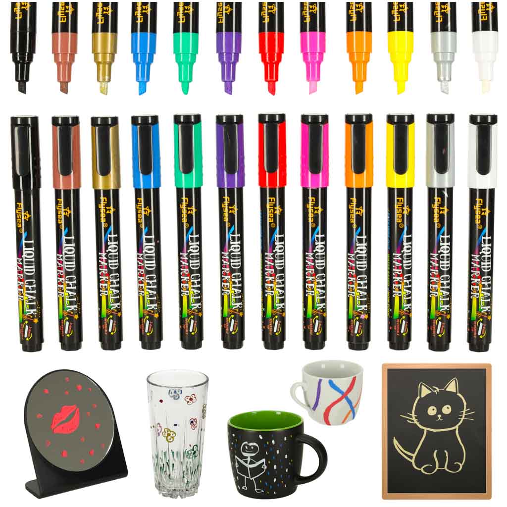 Markers for Glass, Ceramics and Chalkboards, 12 Pcs