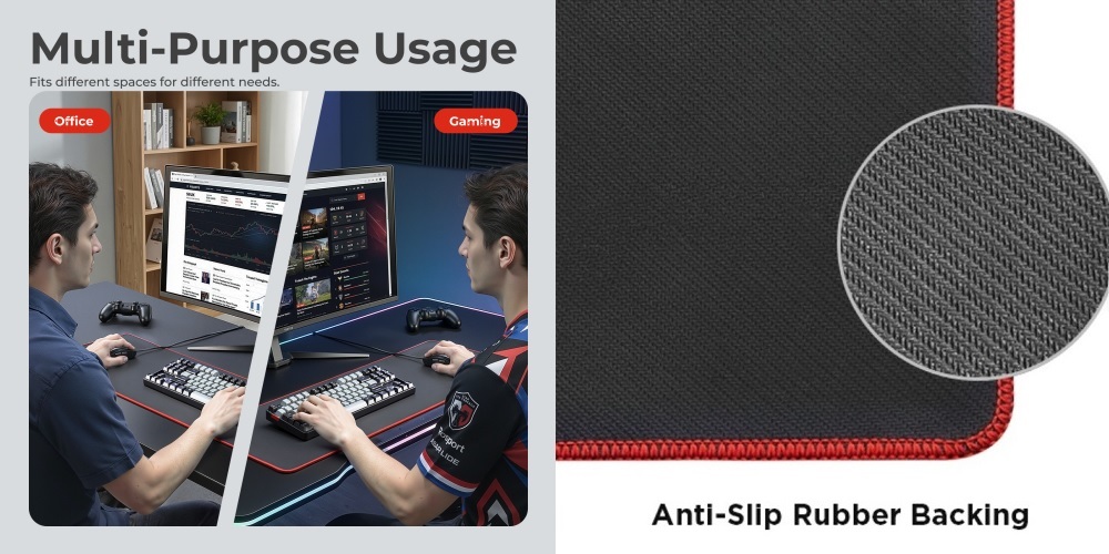 - Large 800x300x3mm size for keyboard and mouse.