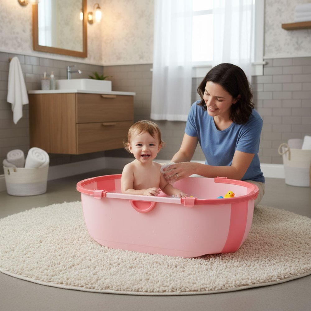 Ensure your little one's comfort and safety from day one, wherever you are. The ECOTOYS foldable baby bathtub is designed for parents who value functionality, portability, and convenience. It's perfect for your home bathroom, as well as for holidays, visits to grandparents, or weekend getaways. Thanks to its lightweight yet stable construction, you can easily carry and store it even in small spaces.