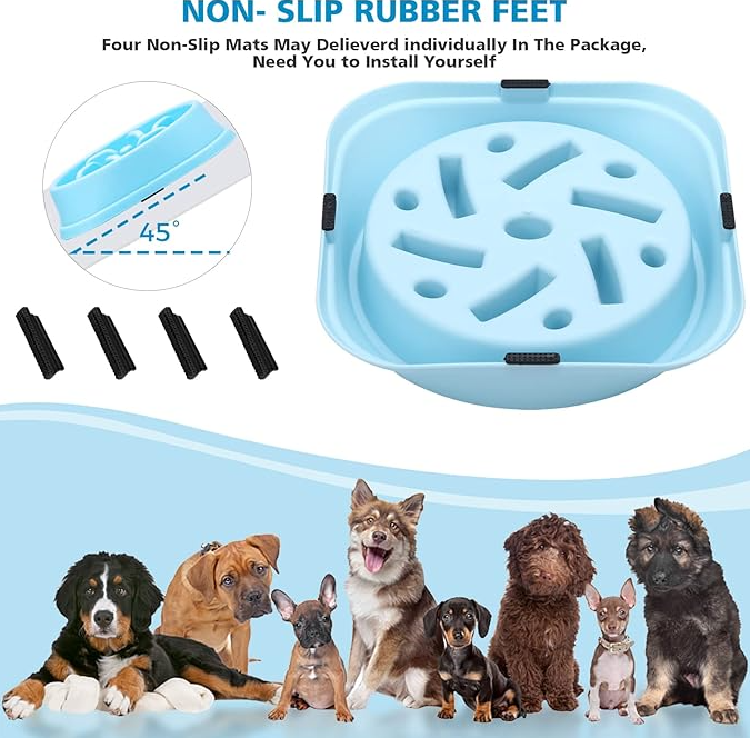 Food slowing bowl for dogs and cats. It has special protrusions, which slow down the dog's food intake. Made of safe silicone (the bowl is dishwasher safe). Eating slowly is very healthy for the digestive system (it reduces the risk of flatulence and obesity).