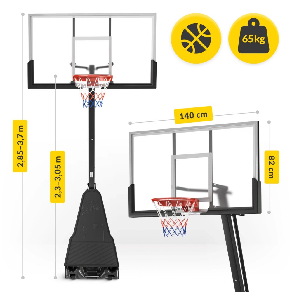 - Adjustable Height: The hoop height is adjustable from 2.3 to 3.05 meters, meeting official standards.