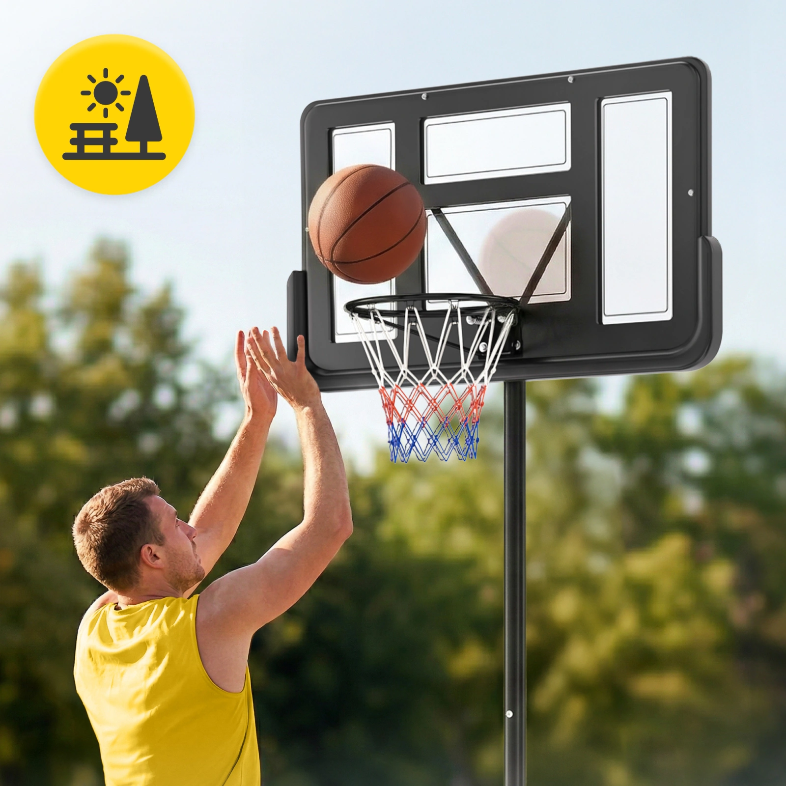 Thanks to its adjustable height, this basketball hoop is suitable for players of different ages and heights. The base can be filled with water or sand to ensure stability, while the built-in wheels make it easy to move.
