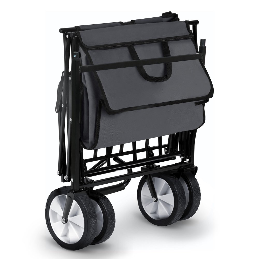 Thanks to its folding design, the cart is easy to store and take anywhere. The front swivel wheels and comfortable handle with a non-slip grip ensure easy maneuvering even when fully loaded.