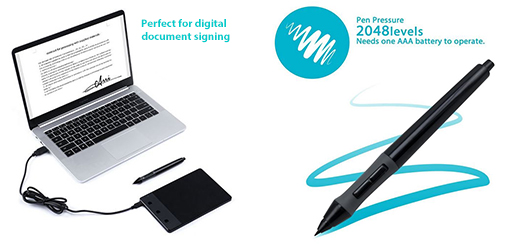 2048 levels, sensitive pen for accurate graphics display.